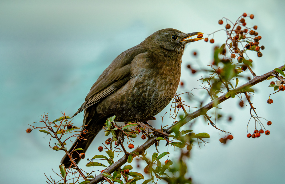 „Amsel mit Feuerbeere“